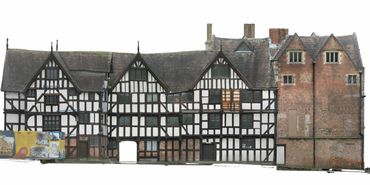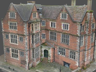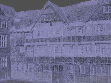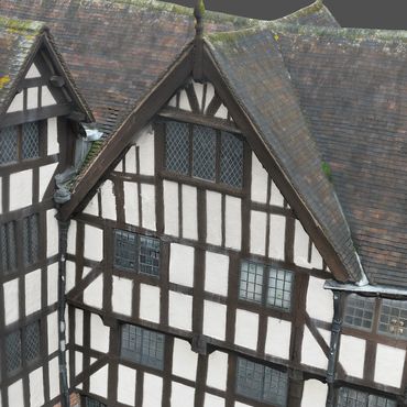 Aerial photogrammetry and survey to create 3D models and CAD plans and elevations of this 16th/17th century merchant's townhouse, to inform conservation and restoration. Work undertaken for Shropshire Council.