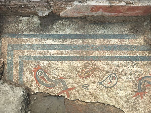 The excavation revealed the remains of a substantial public building, along with a possible shrine or temple. The project also discovered an elite town house, with part of the mosaic floor surviving intact.
