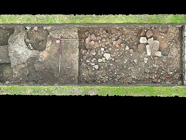 Archaeological excavations in 2024 investigated an area next to the site of the Forum, at the main crossroads which marked the city centre. This was the first research excavation at Wroxeter in more than 30 years.